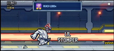 If you’re a fan of reflex-heavy casual games such as Temple Run and Flappy Bird, then you’re in luck. The game plays with the S.A.M. breaking out and surging forward with his jetpack. You control his movement by tapping the screen to lift higher and let go for free falling. Taking off will cause your flight unit to shoot. Anyone or anything under you will most likely have the displeasure of getting shot. You don’t have to fear falling to the ground. Your character will sprint instead. This is something you have to do on certain tasks where you need to tap confused scientists rather than shoot them. You’ll be collecting gold coins, gems, and an assortment of items as you make your endless run. Take note that if you hit any of the obstacles, the game is over. Some items come in pieces that when collected, become a vehicle with special abilities. You use a Vehicle not only for its abilities but also for added protection in case you suddenly hit an obstacle while on the run.